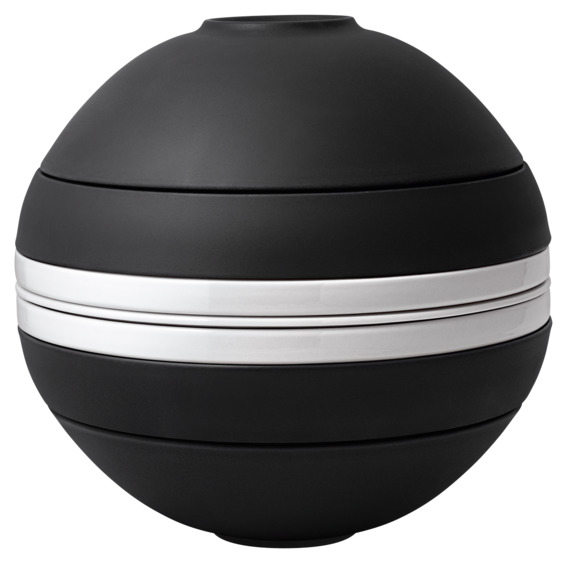 “The ultimate hostess will so appreciate this elegant two-person tableware set that comes with flat bowls, regular bowls, plates and a serving platter, all of which neatly stack into a chic vessel.”